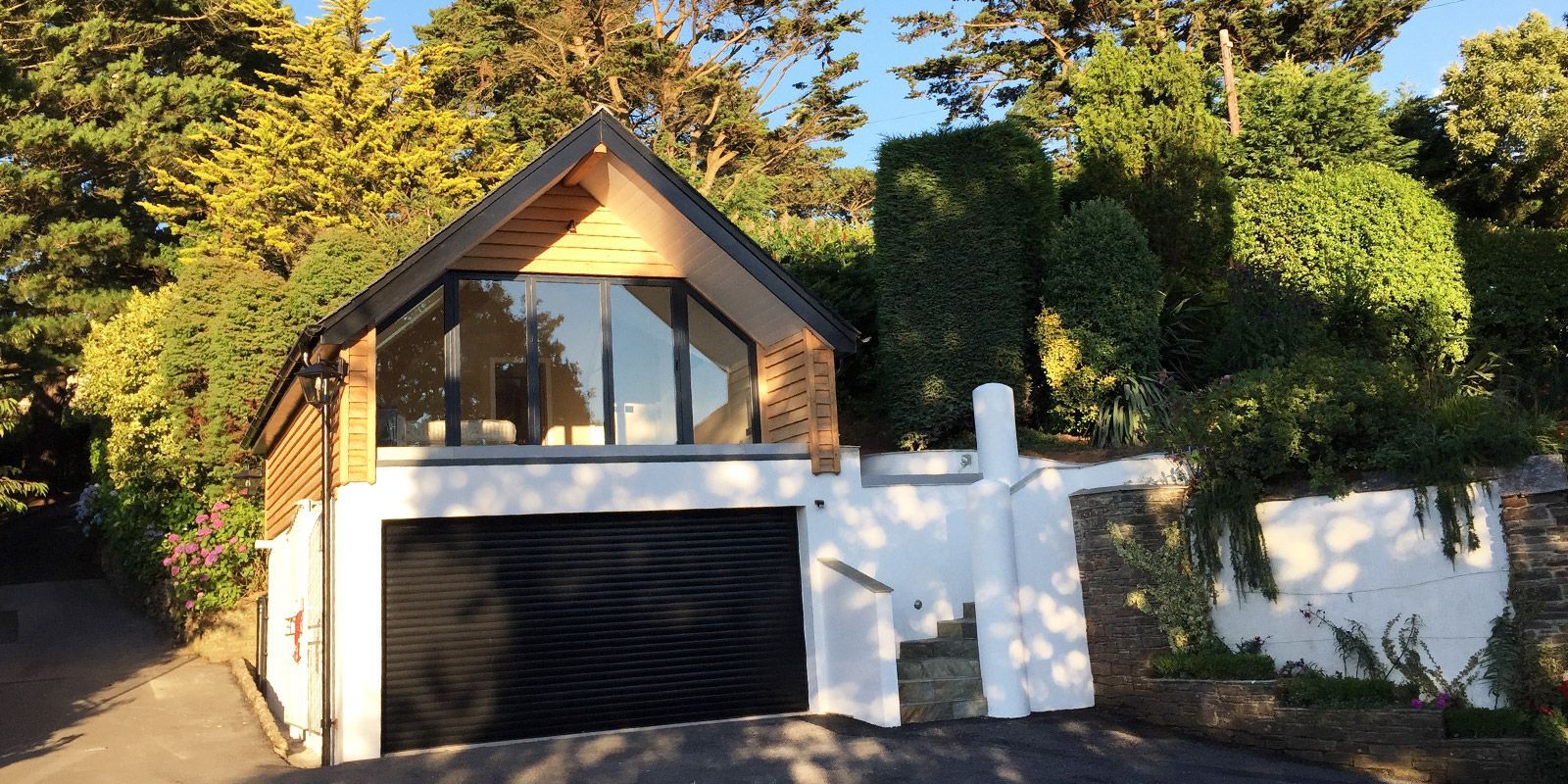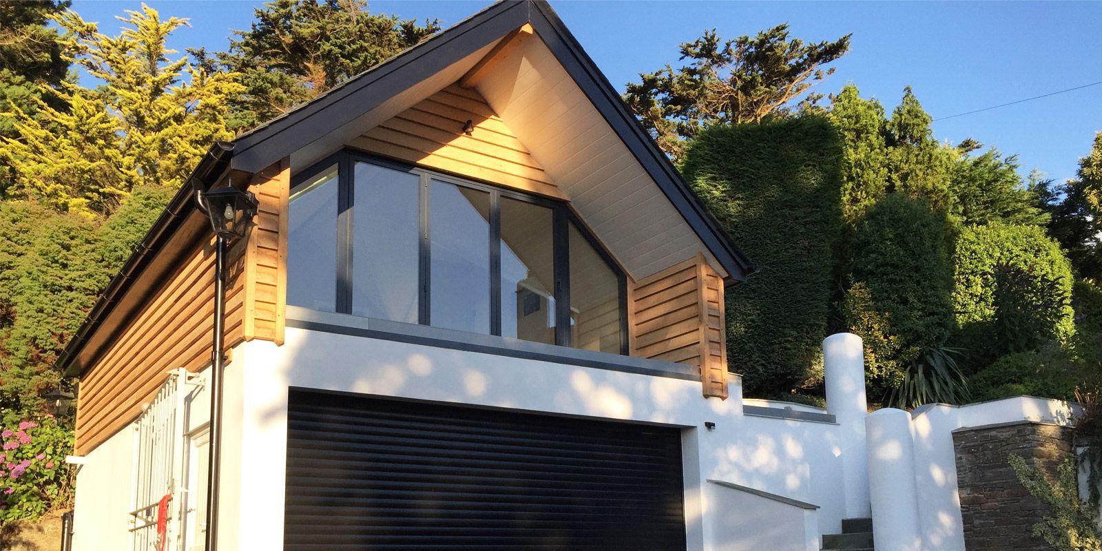 Will had previously worked for the clients, so they naturally returned to him to construct a hide-away ensuite guest bedroom with decking over the garage. Working to a loose brief, Will and his team used predominantly natural materials (Welsh slate to the roof and natural oak feather-edged boarding to the exterior walls) to ensure that the end result sat well within its surroundings. The beautiful Sunflex bi-fold doors reflect the natural environment as well as opening wide to let the outside in.